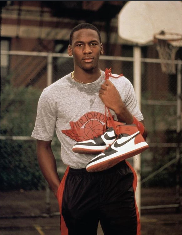 W 1984 roku Nike podpisało kontrakt z Michaelem Jordanem na 500 000 dolarów rocznie (dziś ok. 1,6 miliona). Powstał Air Jordan 1 – kultowy but w czerwono-czarnej kolorystyce, który został zakazany w NBA. Jordan musiał płacić 5 000 dolarów za każdy mecz, w którym grał w tym modelu – co tylko zwiększyło jego popularność.