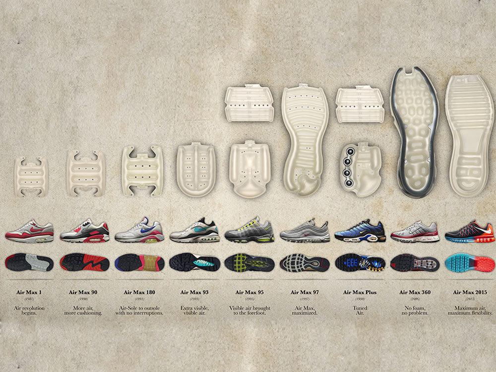 W 1972 roku Nike zadebiutowało z modelami Bruin i Blazer – ten ostatni był noszony przez George’a Gervina. Przełom nastąpił w 1982 roku wraz z premierą Air Force 1, pierwszego buta z systemem amortyzacji Air.