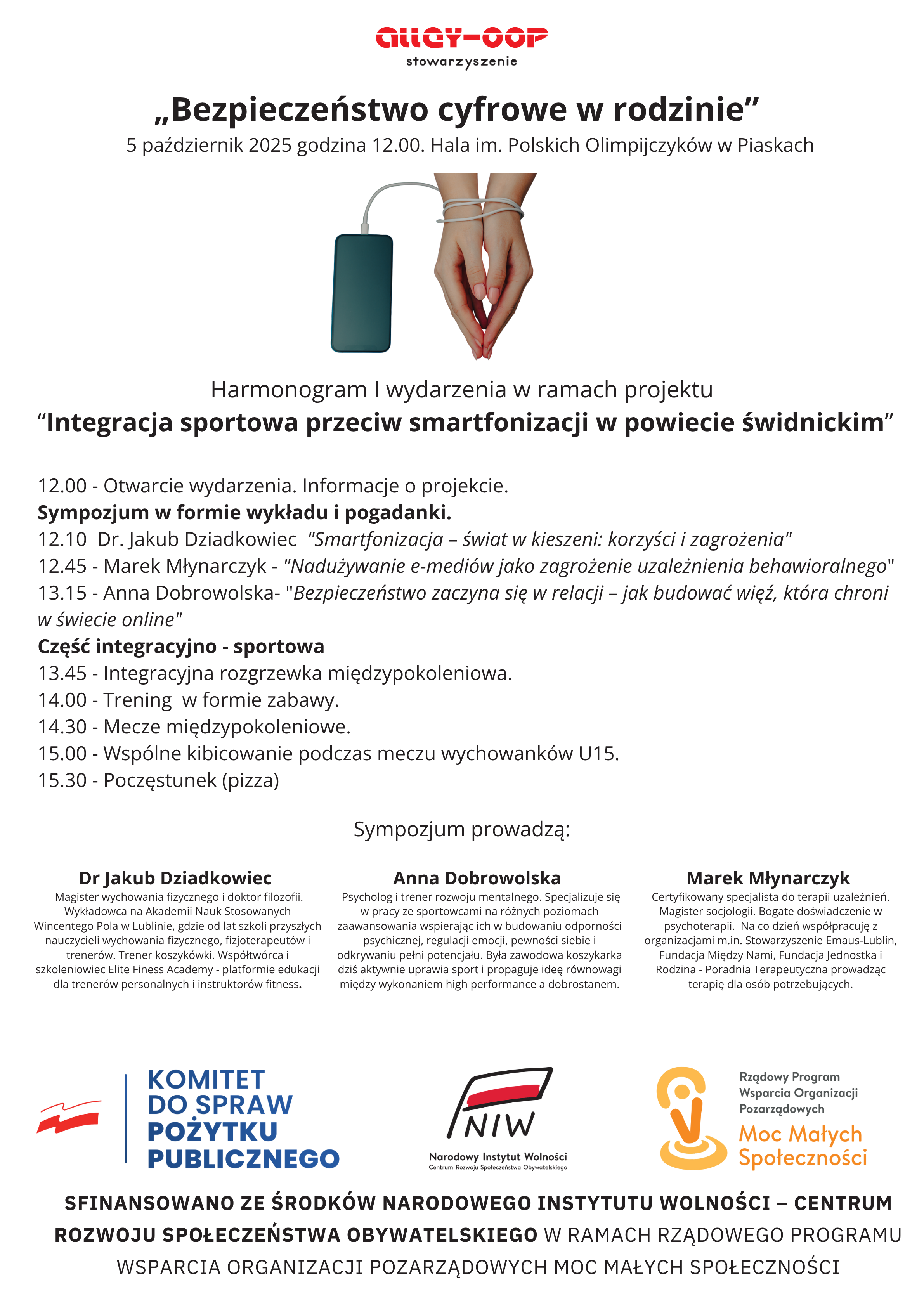 Zapraszamy w najbliższą niedzielę 5 październik o godzinie 12.00 w hali im. Polskich Olimpijczyków w Piaskach na I z cyklu trzech wydarzeń projektu “Integracja sportowa przeciw smartfonizacji w powiecie świdnickim“.